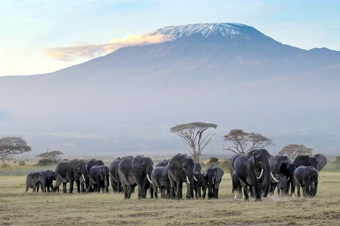 This unique excursion allows you to learn about Amboseli's red elephants while enjoying the stunning views of Mount Kilimanjaro. Experience East Africa's iconic wildlife during a private, full-day safari in Amboseli National Park.